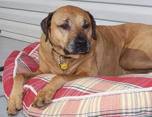 Holly is a 6 year old Ridgeback mix without a ridge. She is a big girl, about 80 lbs, leading to her nickname of "Holly Bear". Holly is a really nice dog, smart, gentle, and willing to please with humans. However, she has dominance issues with other female dogs or dominant males. She found a great home as the only dog with a young woman who is thrilled to have such a loving, devoted companion.